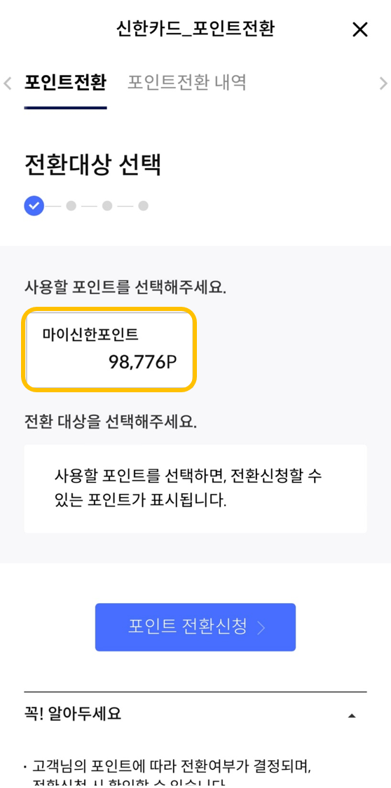 (저는 보유포인트 전체를 전환해 보도록 하겠습니다!)