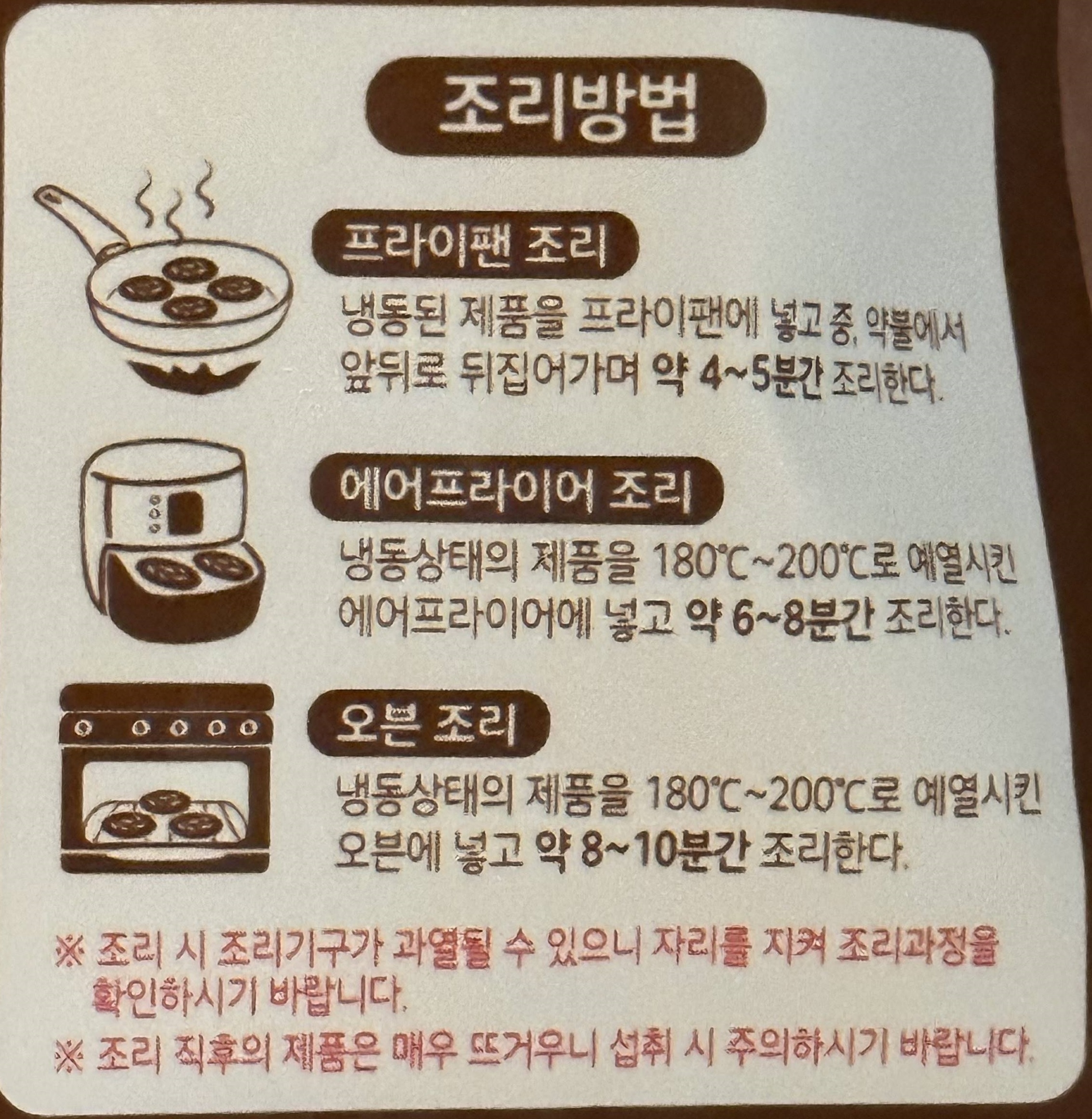 조리 방법은 프라이팬, 에어프라이어, 오븐을 각각 사용하는 조리법이 있습니다.