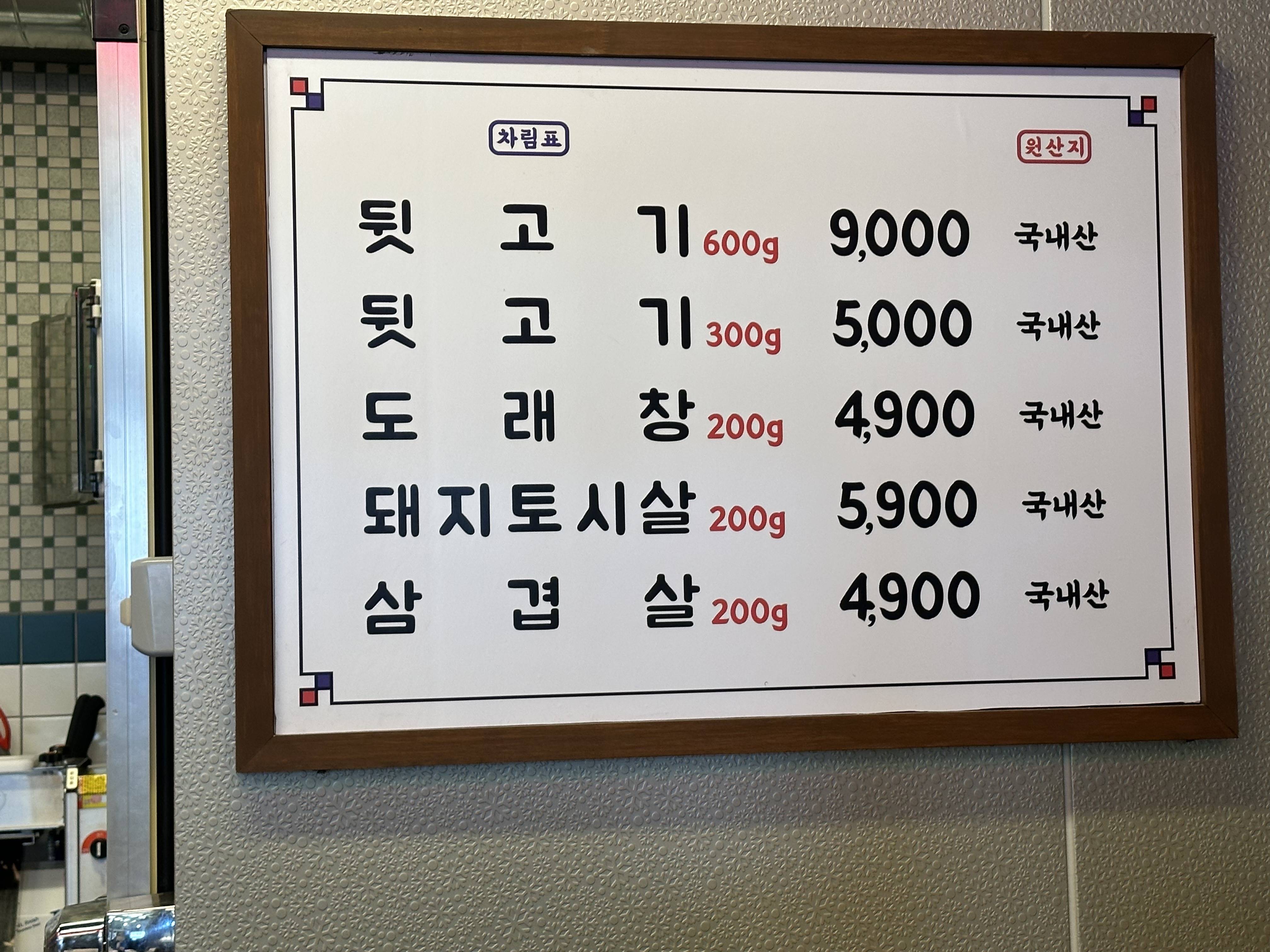 삼겹살 4인분과 도래창 1인분을 주문했습니다.