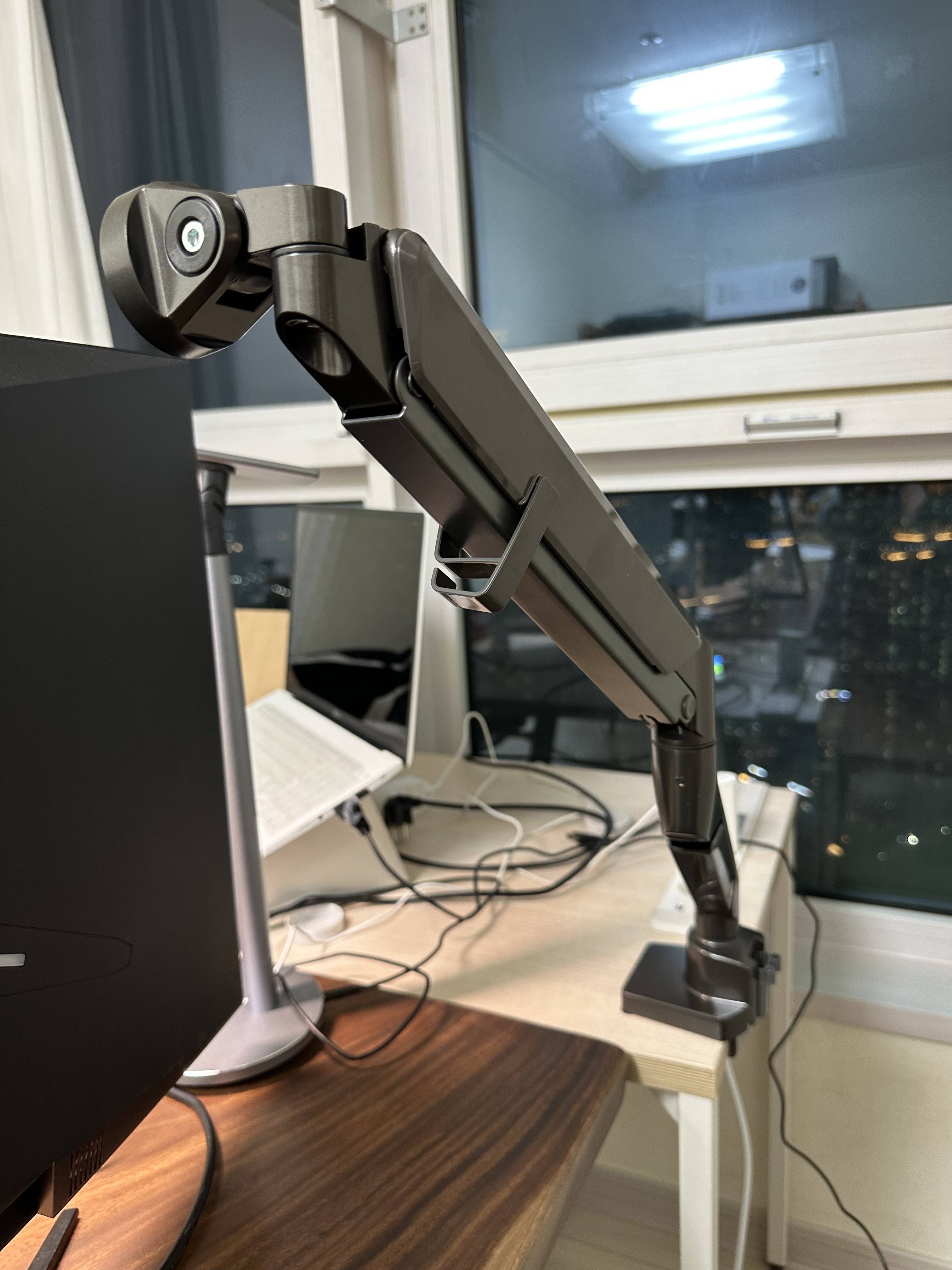 | 모니터암을 설치하니 하부 공간이 넓어져서 가용공간이 늘어났습니다! (모니터암을 설치할까 1년정도 고민하고 샀는데 설치하길 잘했습니다) |