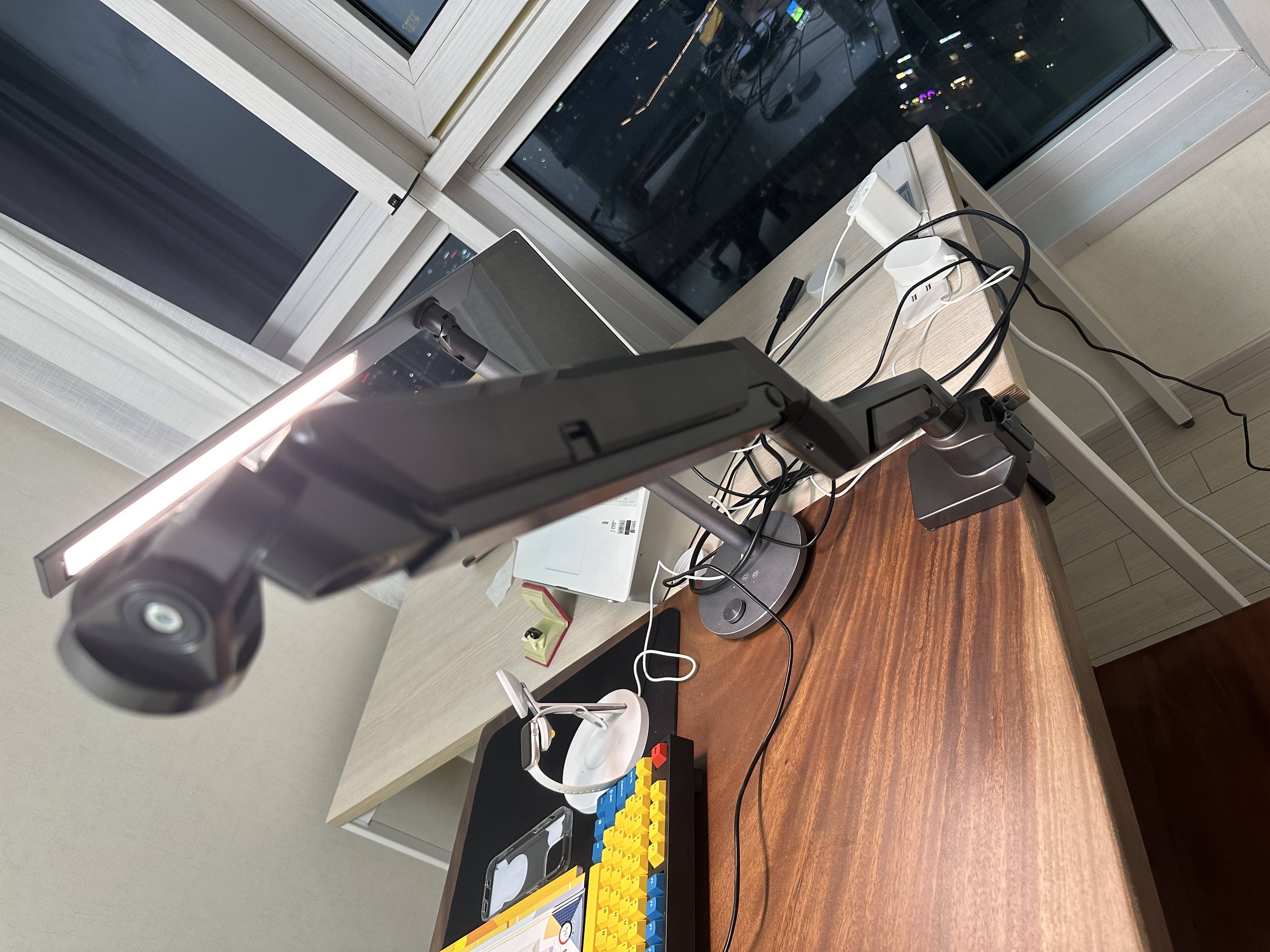이제 마무리로 모니터암 수평 맞추기, 고개숙이지 않게 하기, 선정리를 진행했습니다!