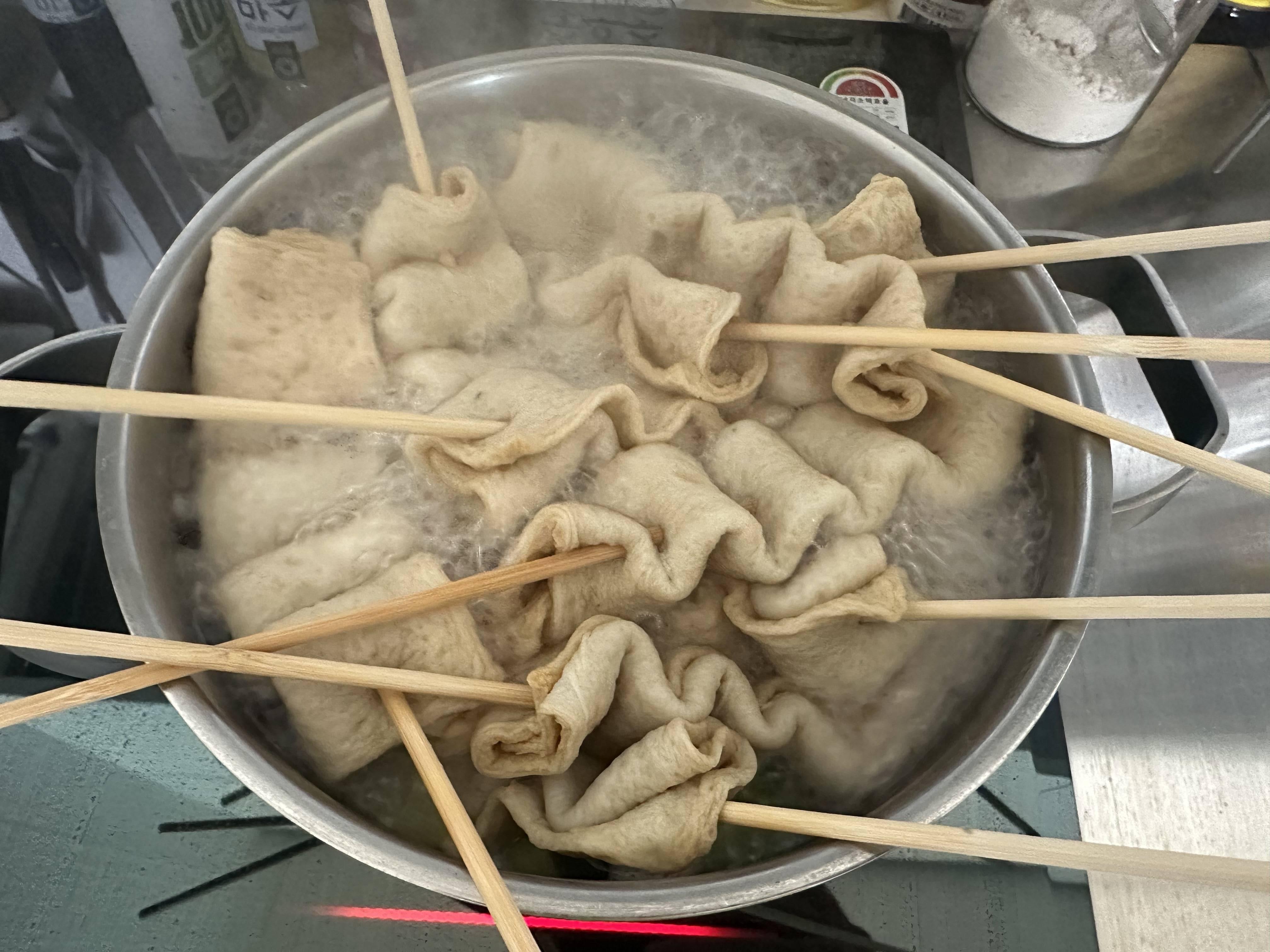 그 후 꼬치 어묵을 넣었는데 어묵이 물을 머금어 불어나서