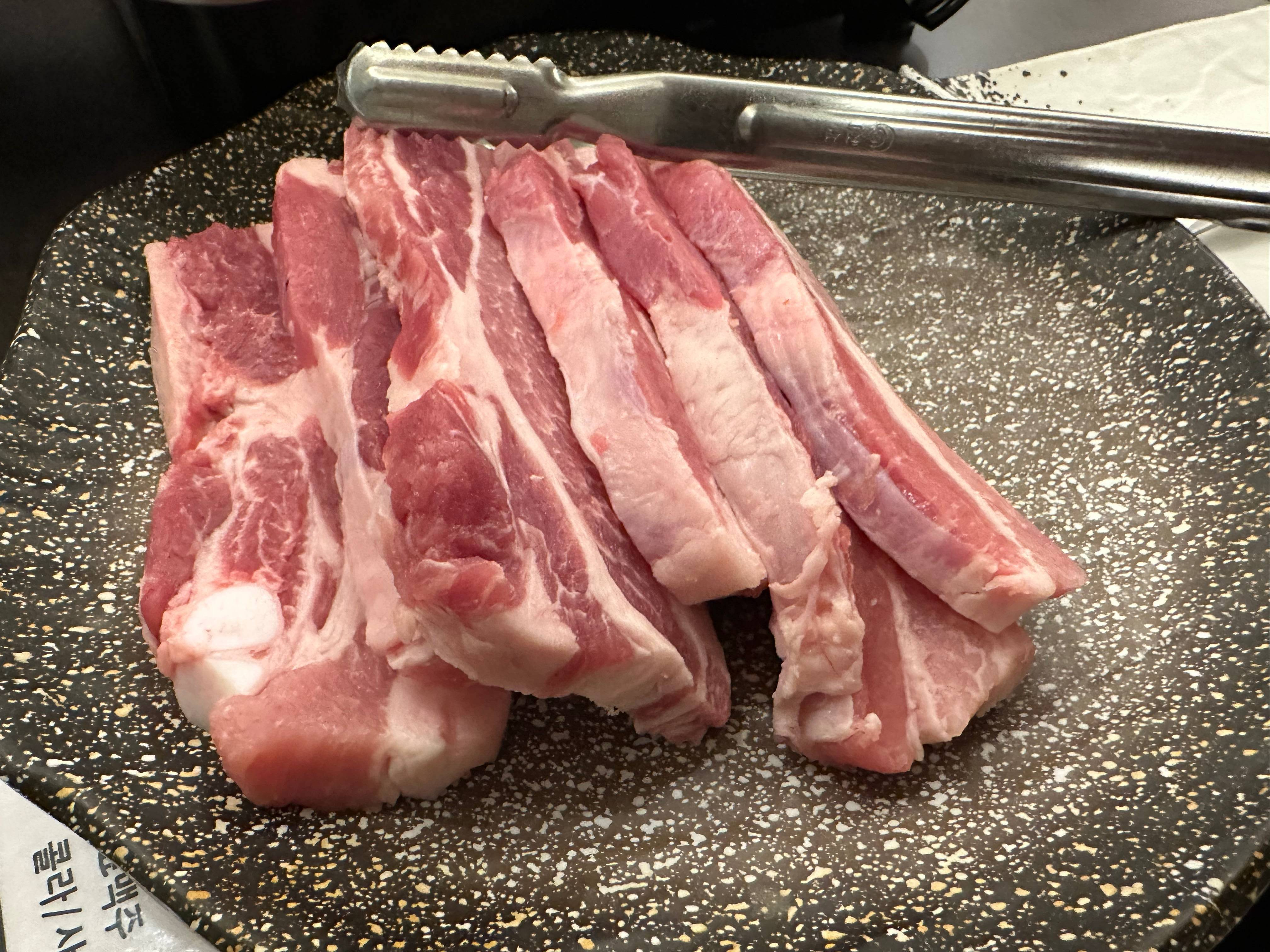 삼겹살 사진입니다! 고기에 적당한 지방부분이 같이 있어서 맛있는 삼겹살입니다!