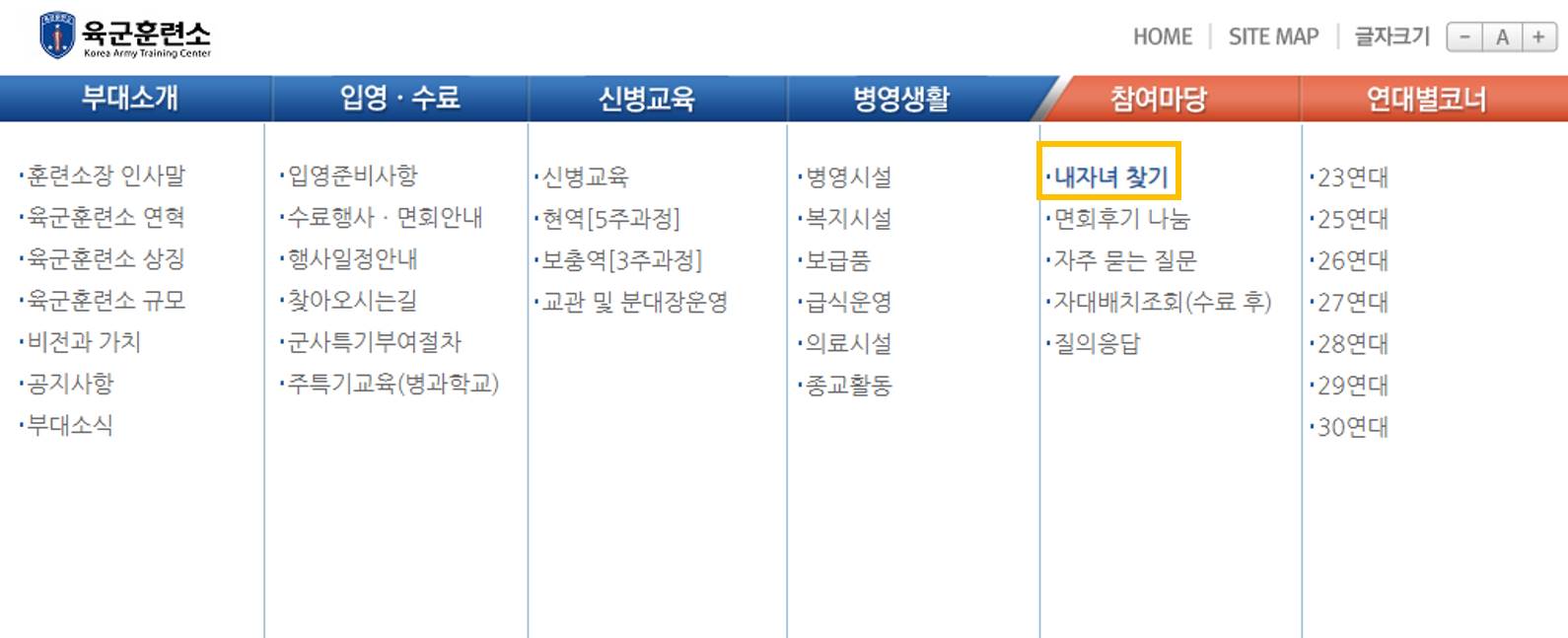 1. 육군훈련소 홈페이지 접속하기-> 상단 메뉴 중 참여마당 클릭