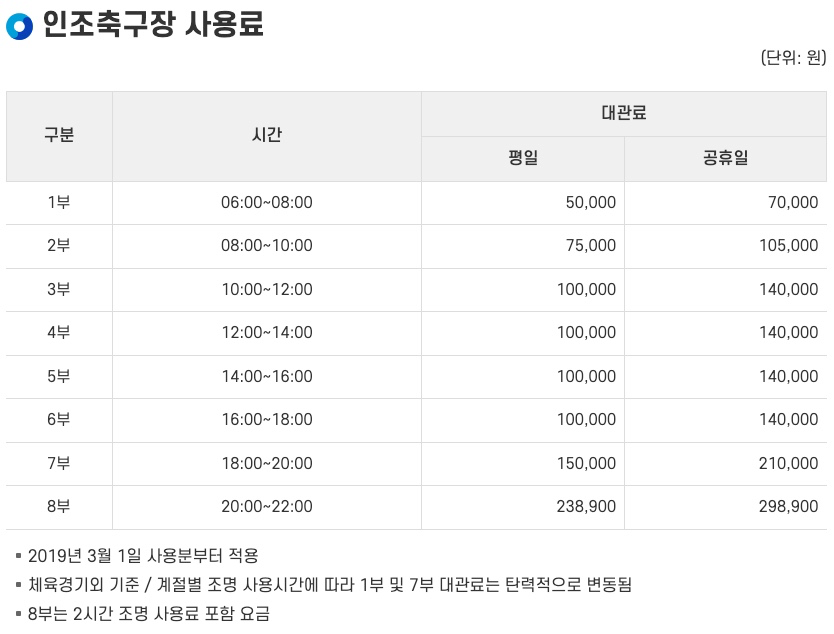 인천 삼산체육관 축구장, 예약방법, 가격, 사용후기