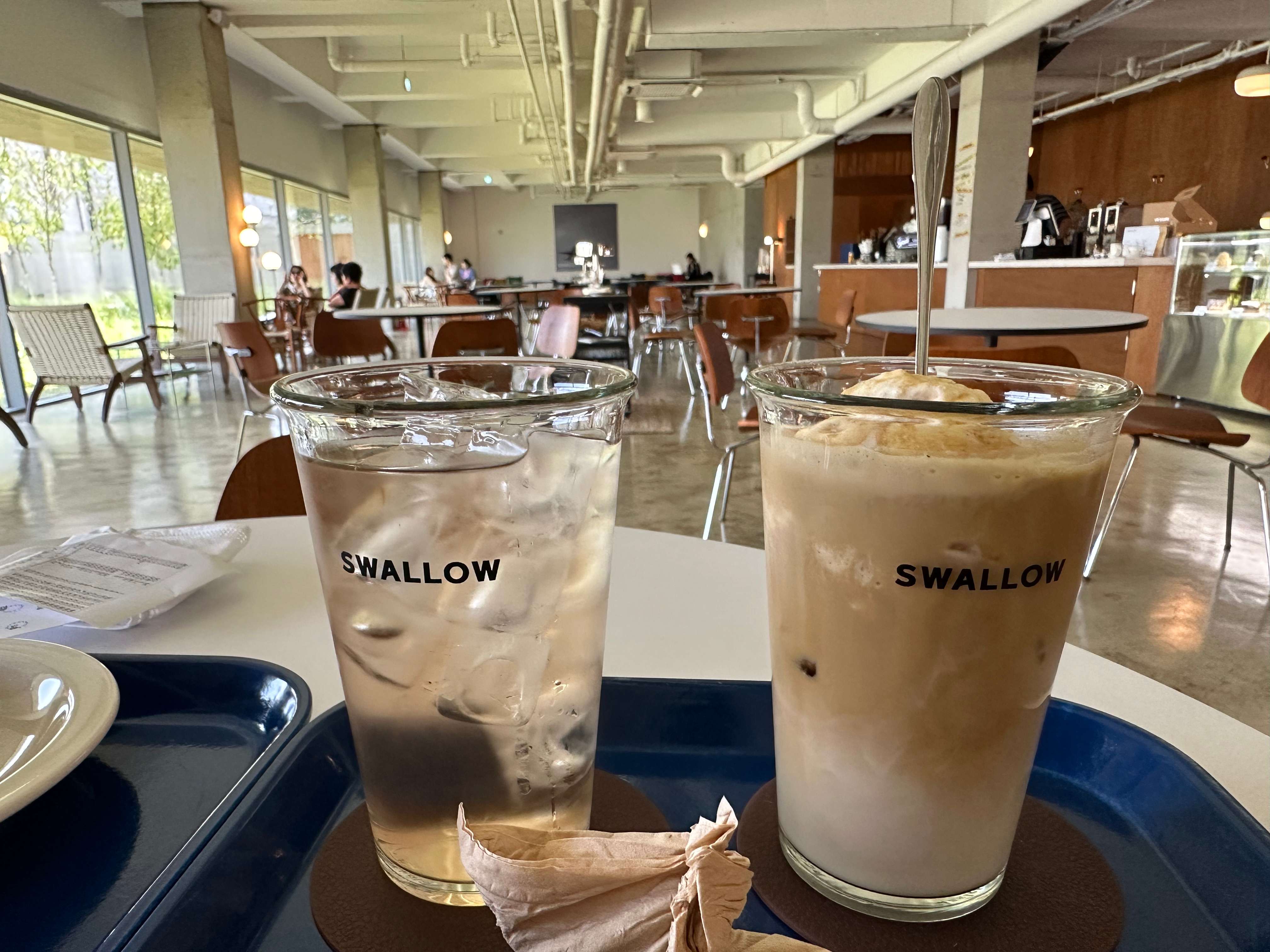 이 카페의 시그니처 메뉴인 스왈로우 크림라떼(아이스)입니다. 라떼에 아이스크림이 얹어져 있는 모습을 볼 수 있습니다. 음료는 달달하고 진한 라떼의 맛입니다. 이에 더해져 바닐라 아이스크림이 녹으면서 라떼의 단맛이 점점 높아지는 것을 알 수 있습니다.