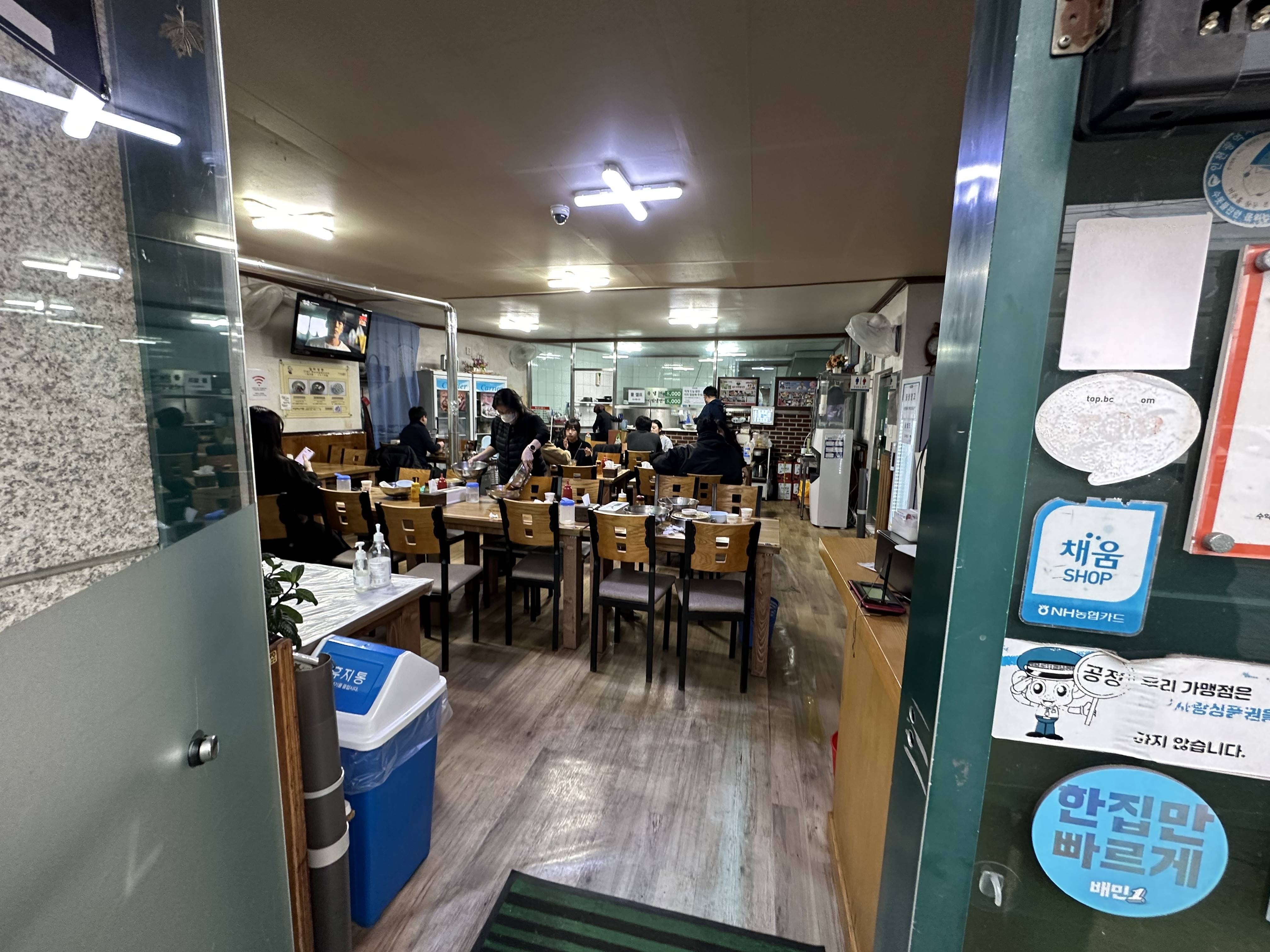 내부는 아래 사진과 같이 4인 테이블이 9개 정도 있고, 오른쪽에 방도 있는 것 같습니다!