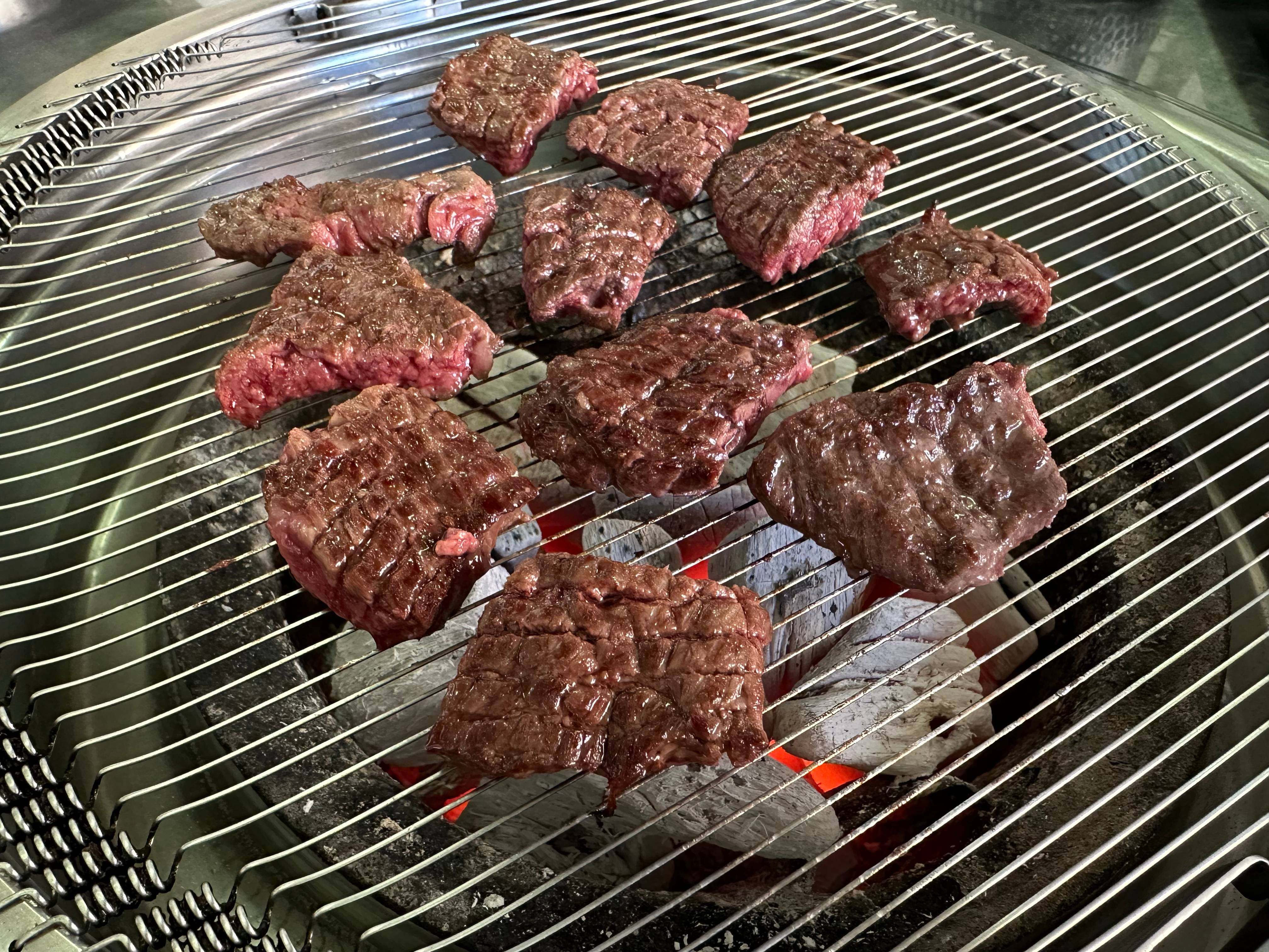 고기를 구운 사진입니다! 고기는 왼쪽부터 오른쪽으로 구워나가면 되는데
