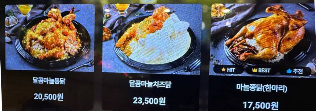 베스트는 매콤반치즈닭, 치즈폭탄통닭, 마늘쫑닭 입니다!