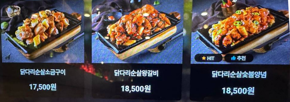 메인메뉴: 매콤반치즈닭과 마늘쫑닭