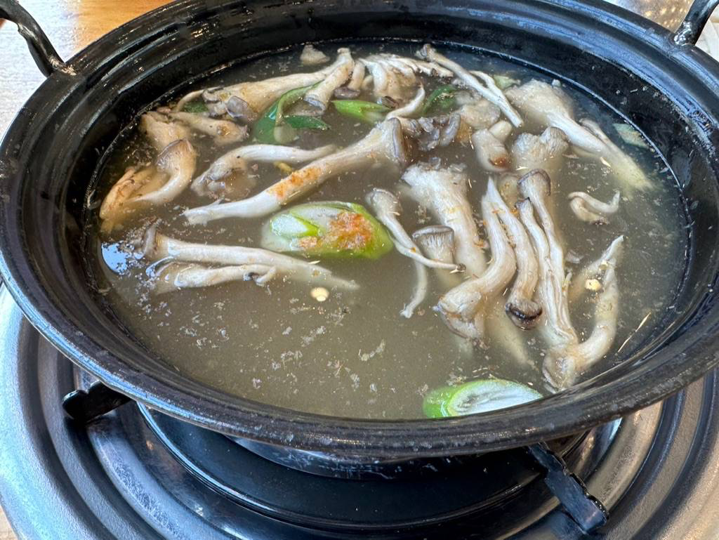 즉석칼국수는 냄비에 육수, 버섯, 파가 들어간 채로 나오고, 국물이 끓으면 칼국수 면을 넣어서 익혀 먹는 방법입니다.