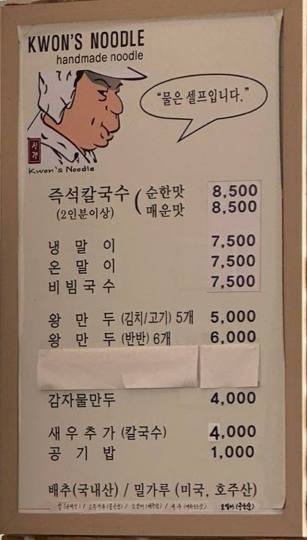 권오길 손칼국수의 경우 원래는 포장이 불가했는데 코로나 시대를 지나오면서 포장이 가능해졌습니다ㅎㅎ