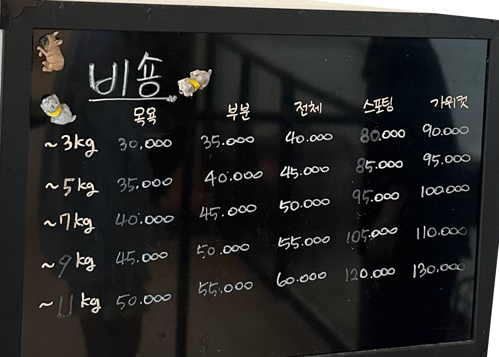 일반 소형견, 중형견과 비숑이 좀 더 높은 가격으로 분리되어 있네요ㅎㅎ