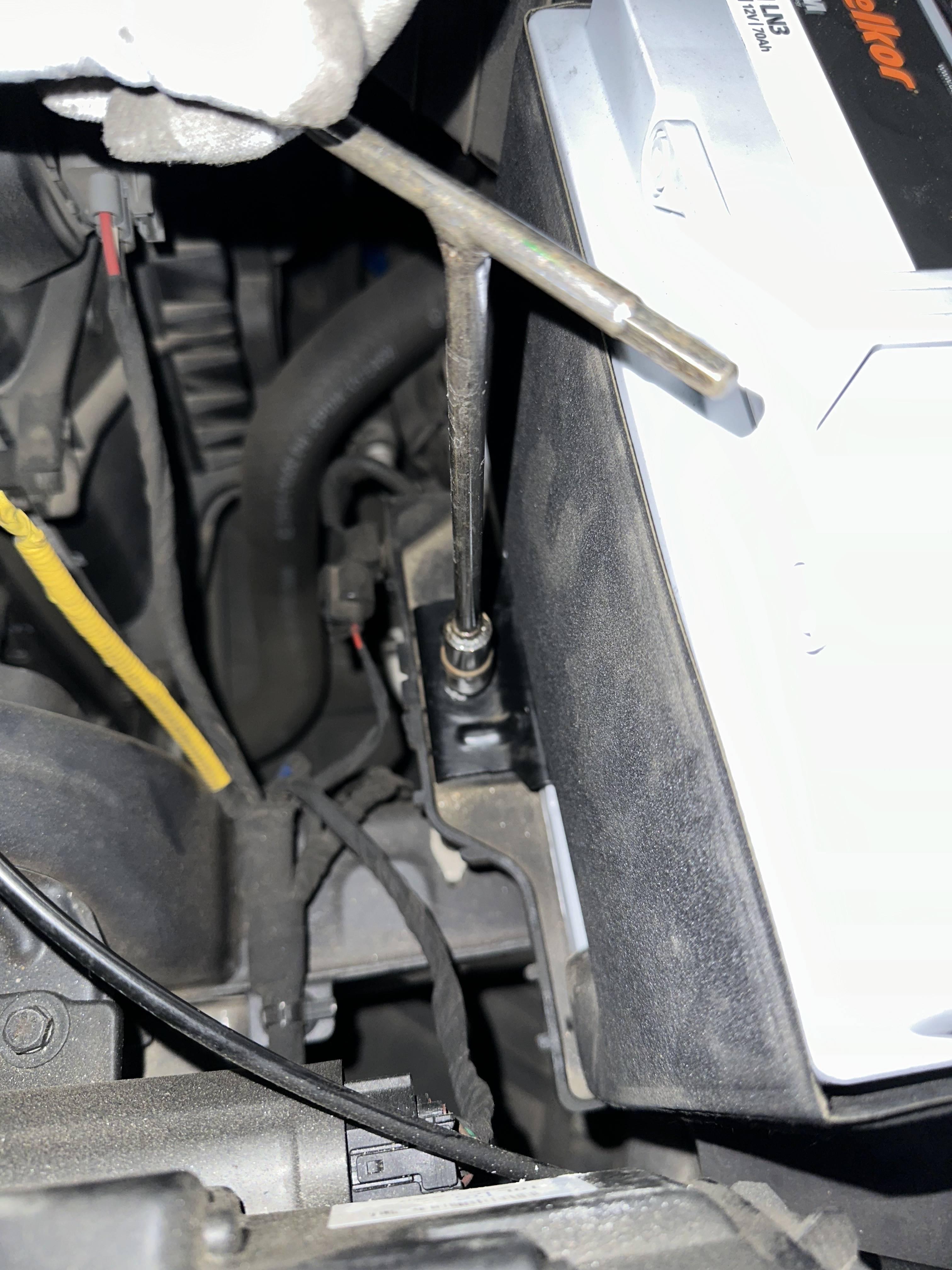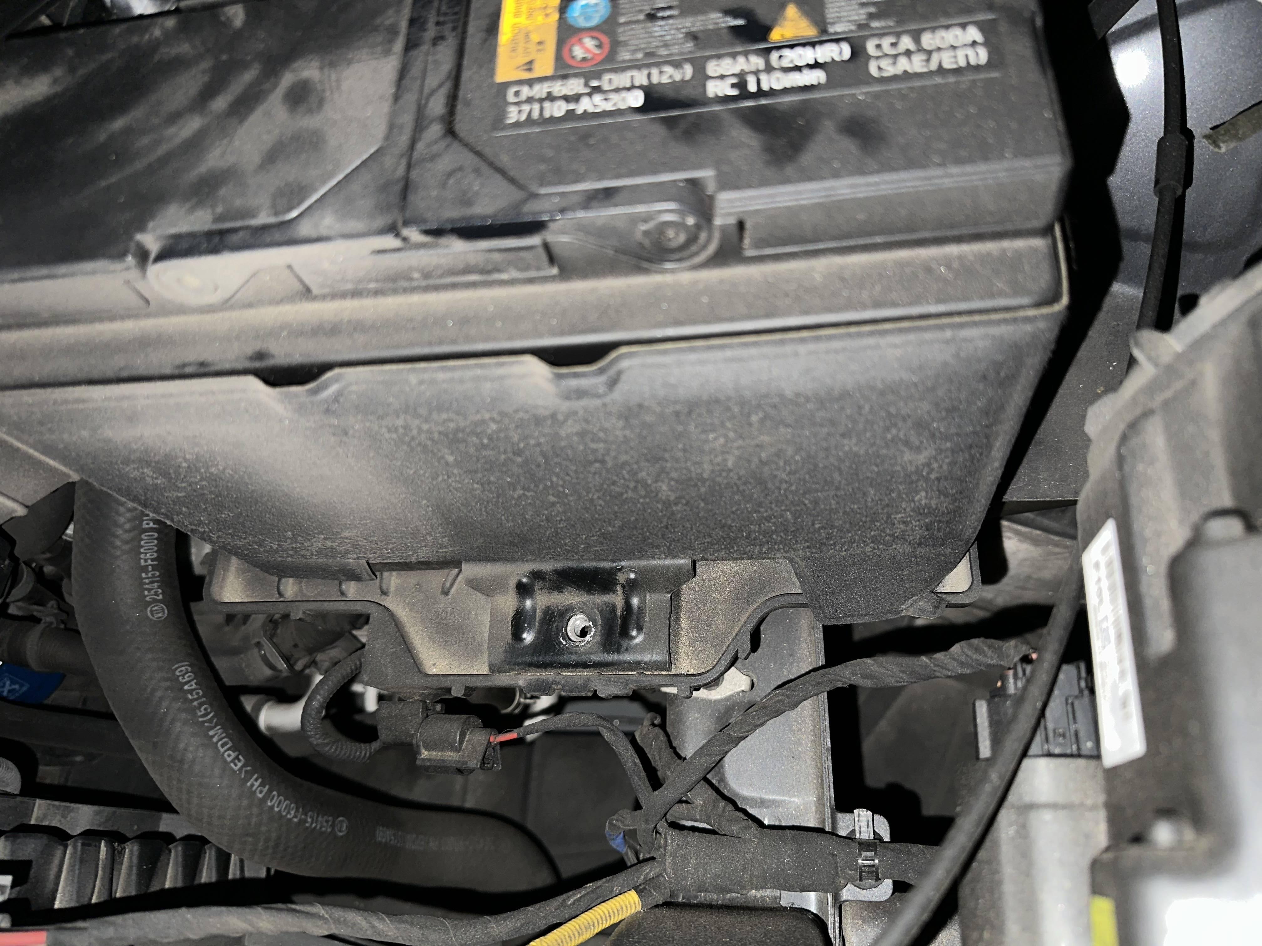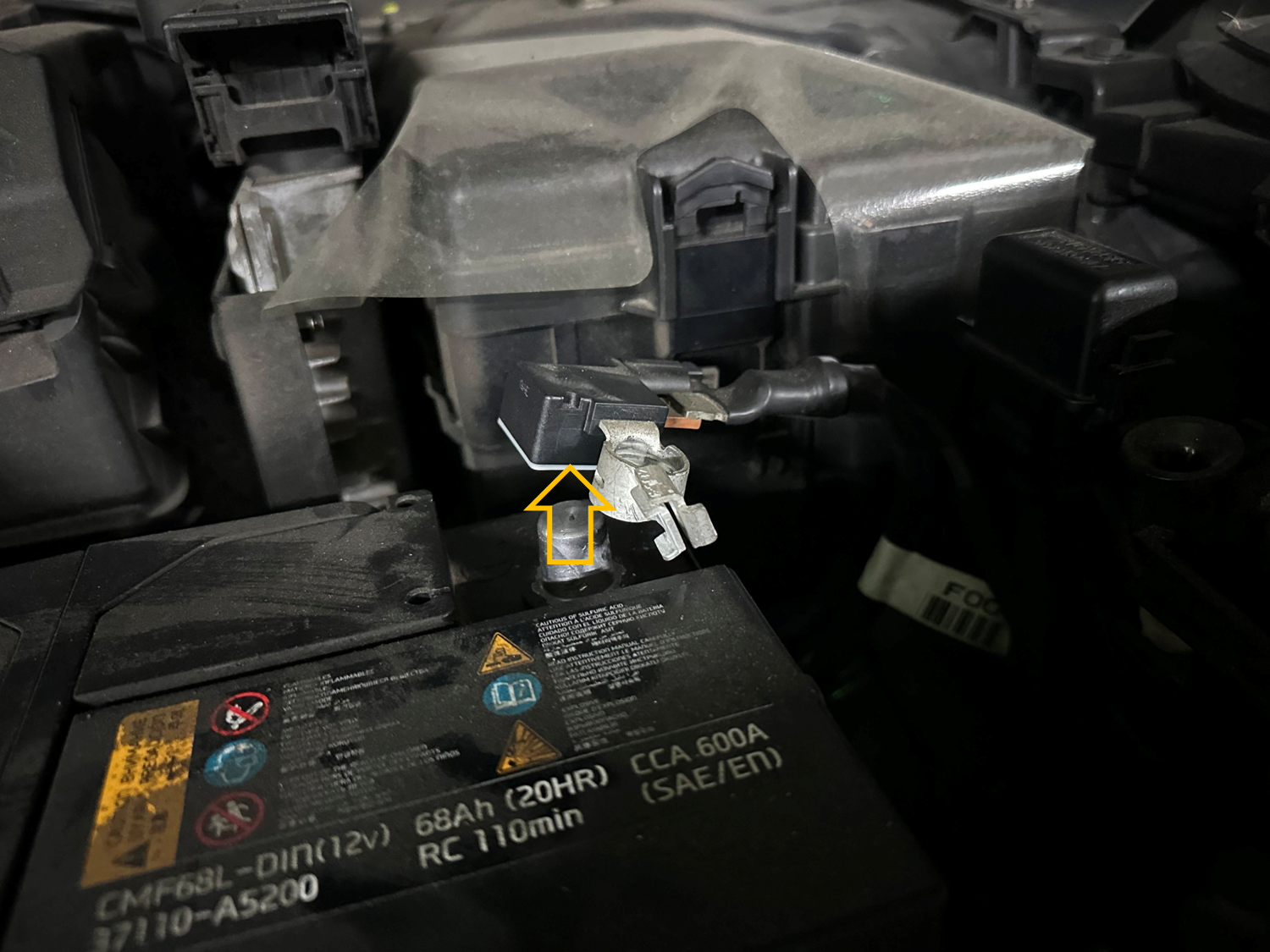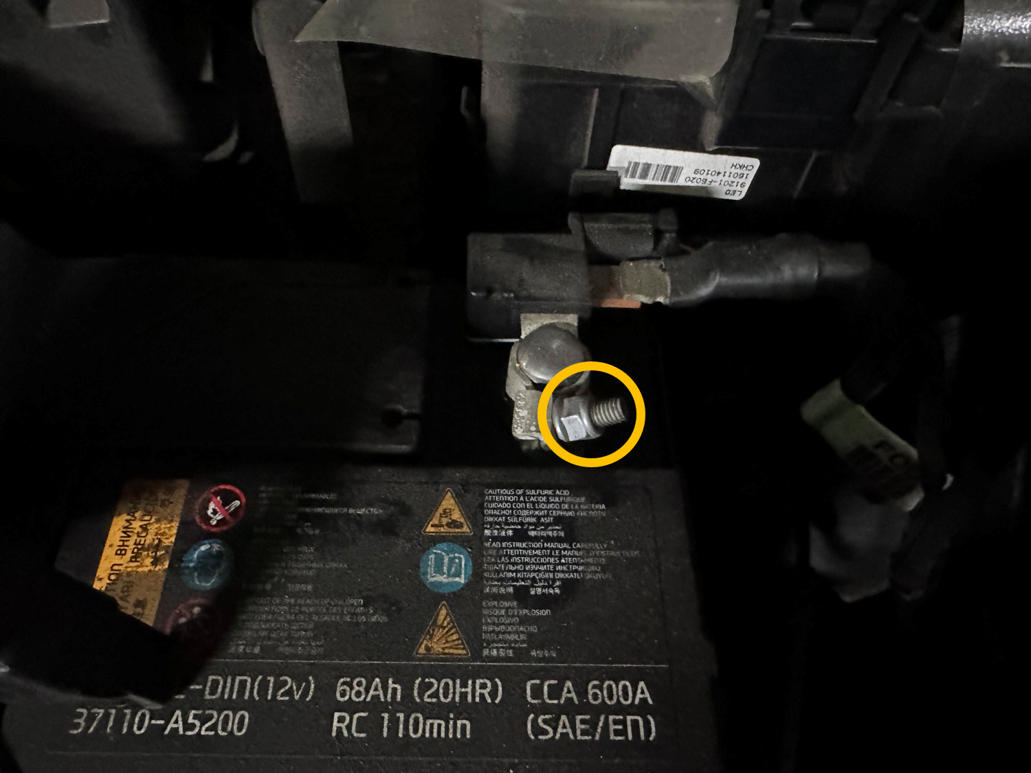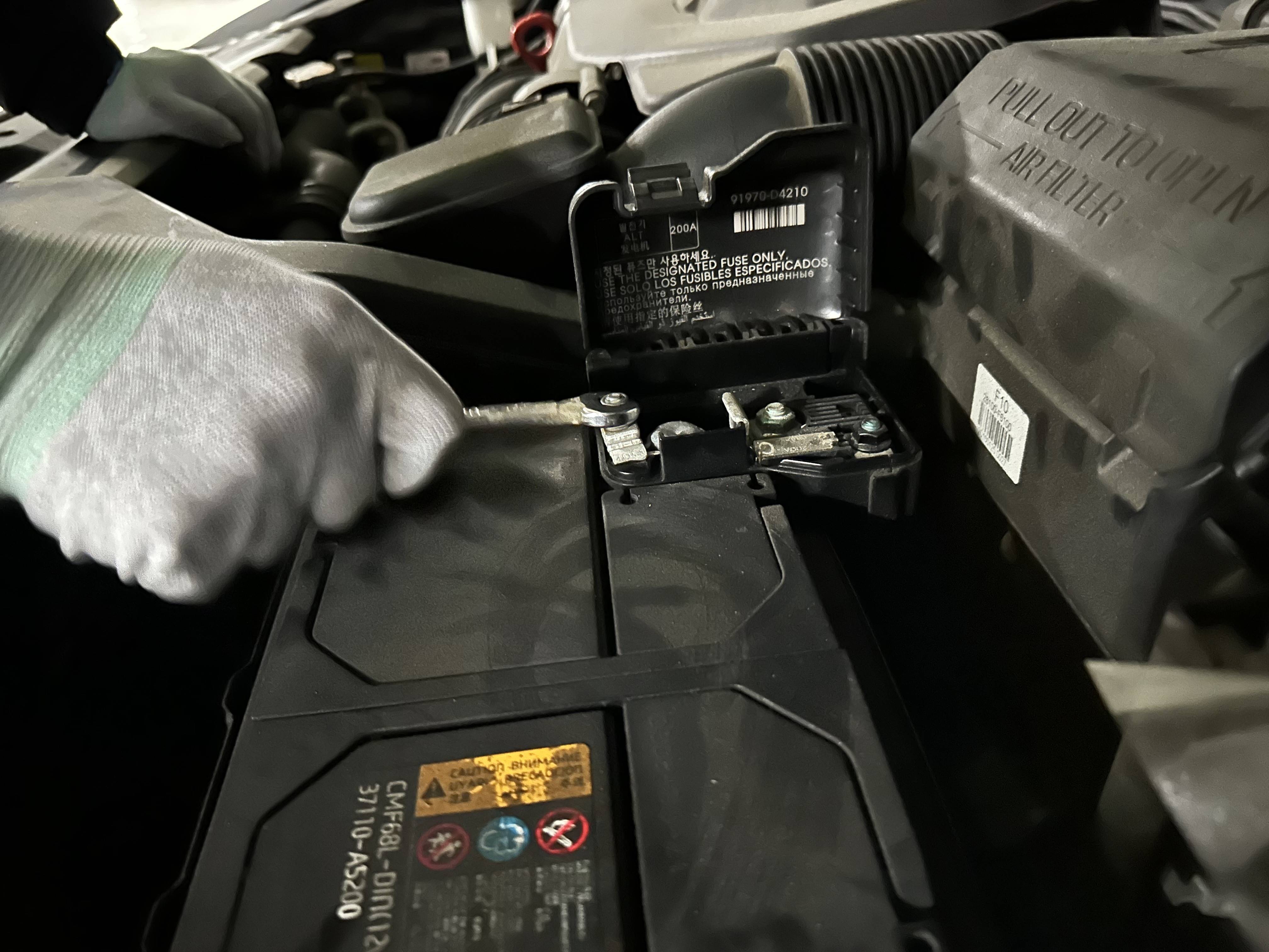 플러스 케이블도 마이너스 케이블과 비슷합니다! 플러스가 적힌 플라스틱을 열면 보이는 볼트를 풀고 위로 들어올리면 케이블 탈거가 완료됩니다!