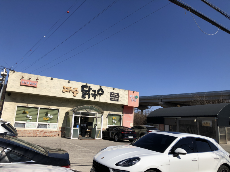 파주 닭 국숫집의 주차장은 보시는 바와 같이 여유로운 편입니다. 파주닭국수 건물 오른쪽 부분에 3중 주차를 하여 주차 걱정은 없이 식사하실 수 있습니다. 또한 주차를 안내해주시는 분이 있어서 차키를 맡기면 나중에 식사 끝나고 나왔을 때 나가기 편한 위치에 차를 주차해 주십니다.