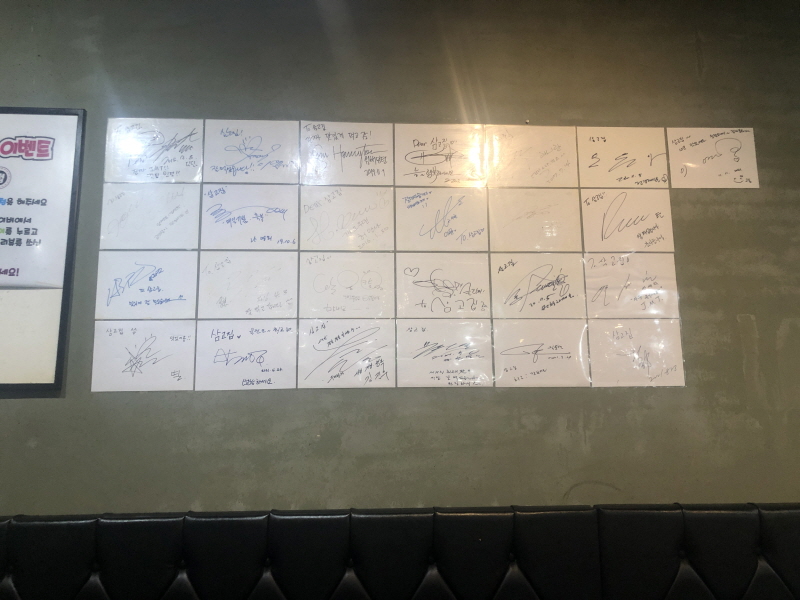 삼고집의 내부 사진입니다. 내부의 자리는 15 테이블 이상 여유롭게 자리가 있습니다. 테이블 간 거리도 생각보다 넓은 편이어서 그렇게 불편하지는 않았습니다. 그리고 방문했던 여러 연예인들의 사인들도 눈에 띕니다. 화장실은 음식점 있으니 참고하시면 될 것 같습니다!
